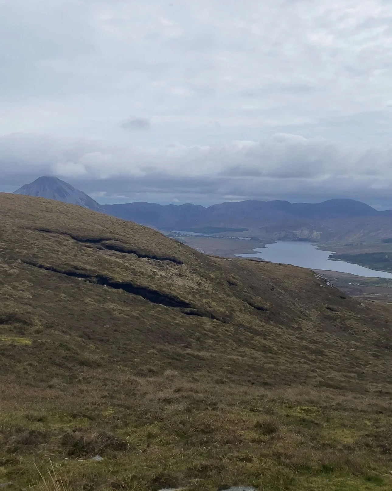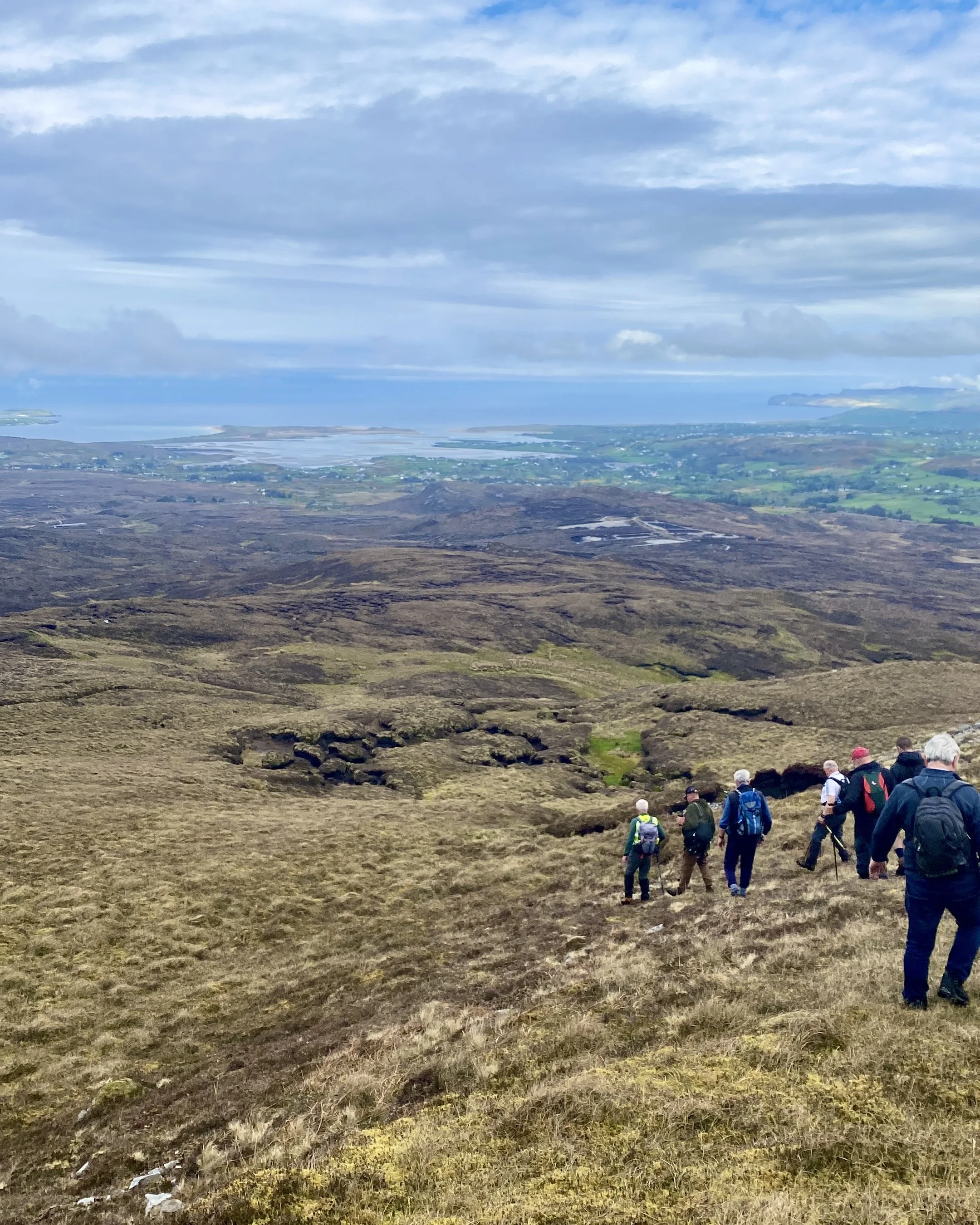 5 hour fairly challenging mountain walk from Gaoth Dobhair towards Tulach Beaglaoich, An Fál Carrach, following the old burial route.
