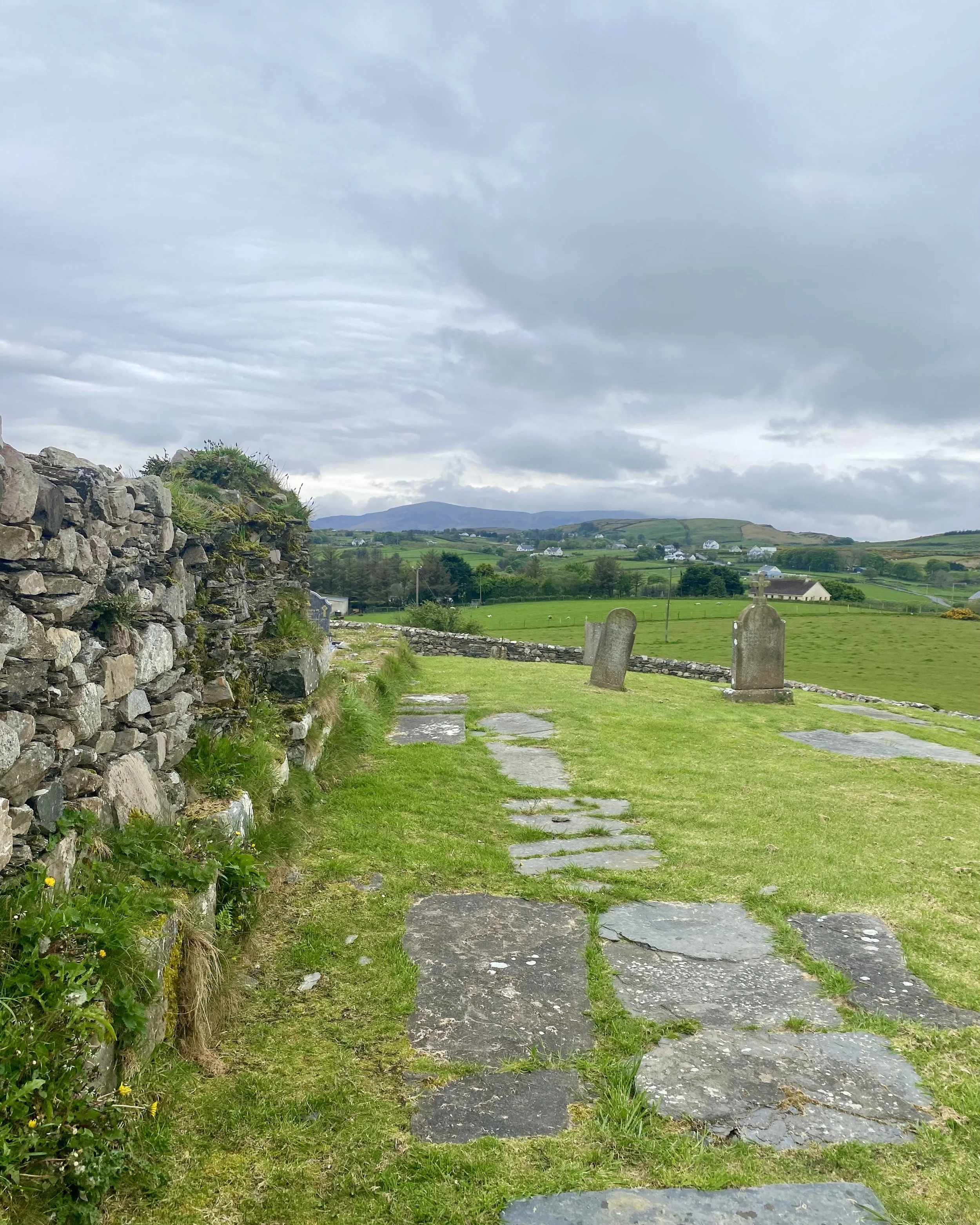 Our ancestors carried the dead from the parishes of the Na Rossa and Gaoth Dobhair across the mountains to Tulach Beaglaoich outside An Fál Carrach, the only sacred burial place within the three parishes. On Sunday 16th February 1992 a handful of people walked the original funeral route again for the first time.